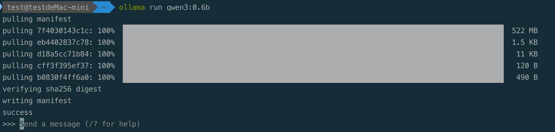 ollama run qwen3:0.6b看到如下界面表示下载并启动成功